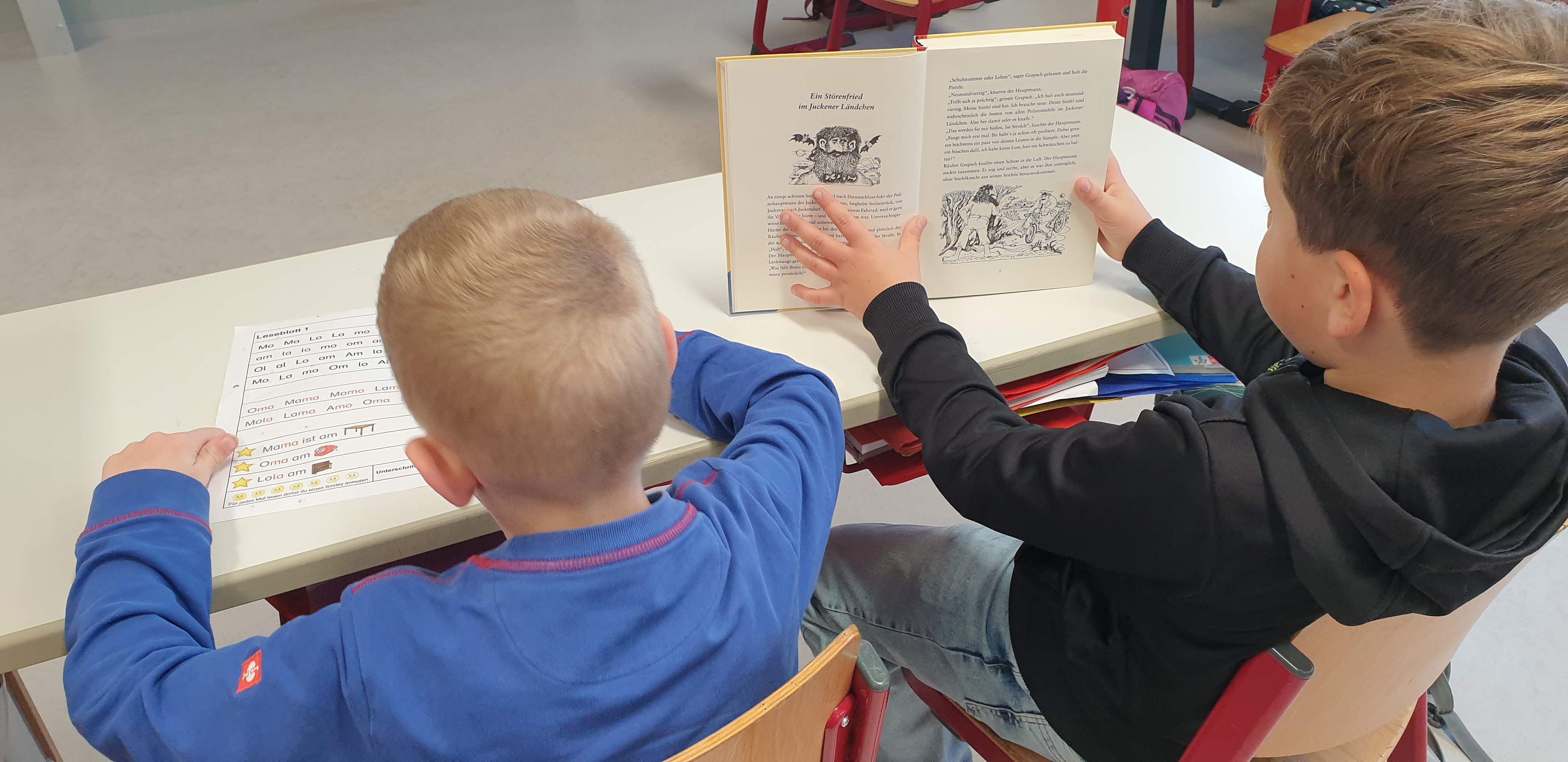 Immer freitags treffen sich die Klasse 3b und die ErstklässlerInnen zum gemeinsamen Vorlesen. Hier sind unsere ersten Eindrücke vom gelungenen ersten Treffen. Alle Kinder waren hochmotiviert, haben mit Freude gelesen, zugehört und sich gegenseitig unterstützt