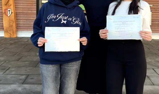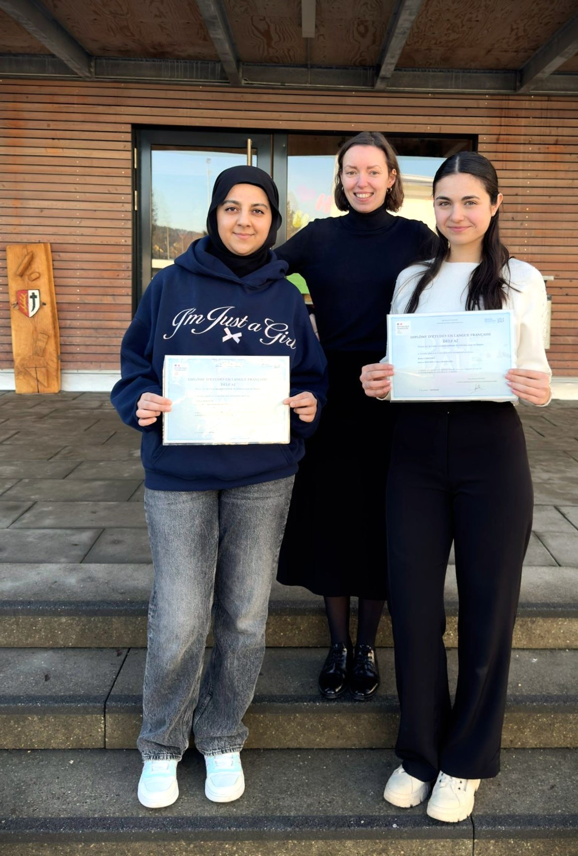 Zwei Schülerinnen aus der 10. Klasse haben Zertifikate für ihre bestandene DELF-Prüfung entgegennehmen dürfen.
