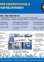 Die Anmeldung in die Klasse 5 der Werdenbergschule findet in diesem Jahr vom 09. bis 12. März 2026 zu folgenden Zeiten statt - gerne können Sie auch schon im Vorfeld einen Termin mit unserem Sekretariat vereinbaren: Mo.- Do. / 09.-12.03.2026 jeweils 8.00 -12.00 Uhr und Di. + Do. / 10. + 12.03.2026 jeweils von 13.00 – 16.00 Uhr